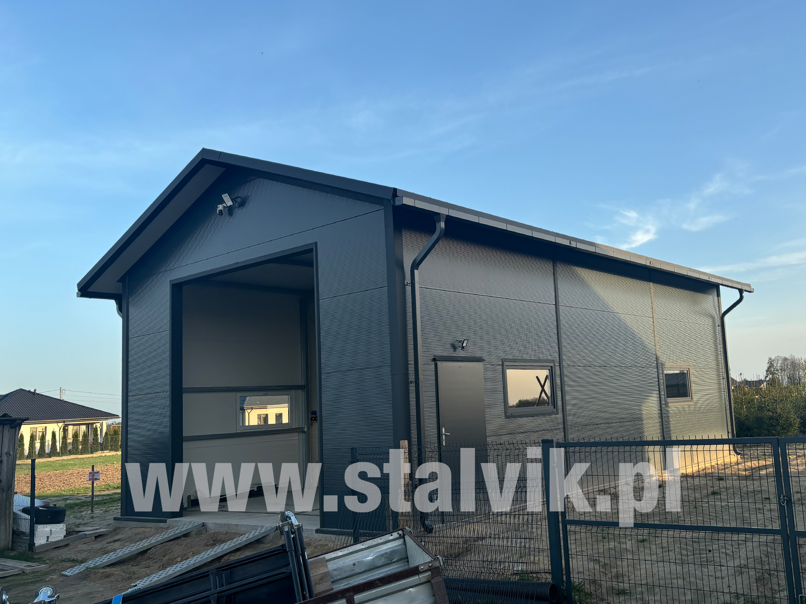 Oferujemy kompleksowe usługi obejmujące projektowanie, dostawę oraz montaż garaży z płyty warstwowej dla klientów indywidualnych oraz firm.